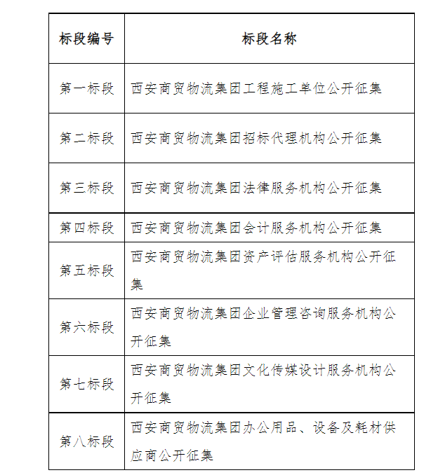 第二標段:西安商貿(mào)物流集團招標代理機構公開征集