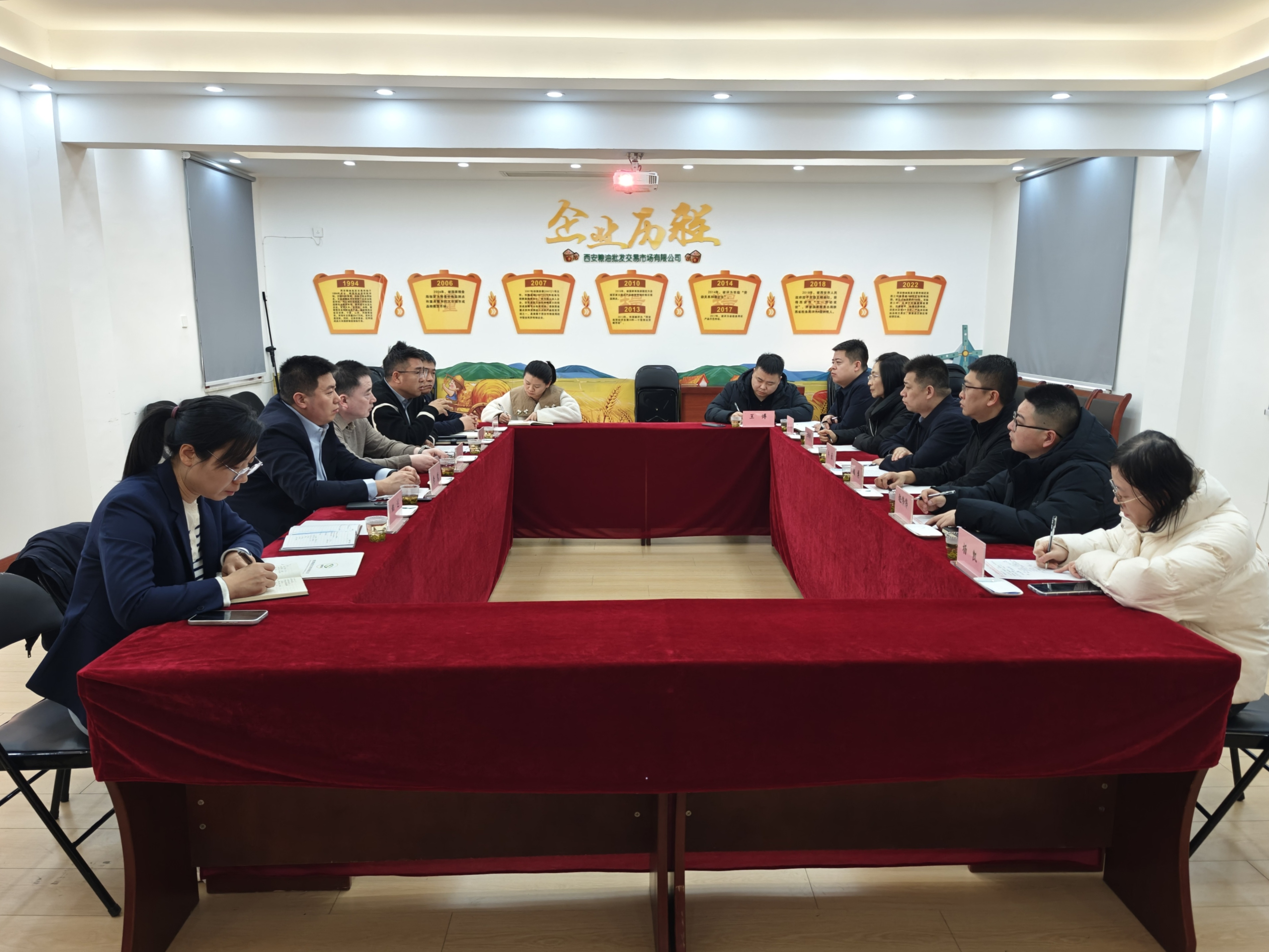 座談會上,集團(tuán)領(lǐng)導(dǎo)和相關(guān)部門介紹了集團(tuán)整體發(fā)展概況、戰(zhàn)略布局及業(yè)務(wù)開展情況,糧油批發(fā)交易市場介紹了市場的概況、發(fā)展歷程、運(yùn)營情況。延安物流儲備集團(tuán)負(fù)責(zé)人介紹了企業(yè)發(fā)展定位、業(yè)務(wù)布局及核心優(yōu)勢,雙方就行業(yè)發(fā)展趨勢、企業(yè)經(jīng)營管理等內(nèi)容展開深入探討,并表示雙方可以在股權(quán)投資、項目合作、人才交流等方面開展進(jìn)一步合作,實現(xiàn)資源共享、優(yōu)勢互補(bǔ)。