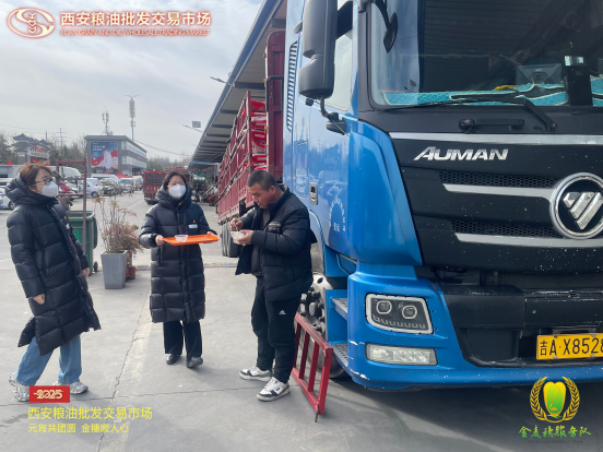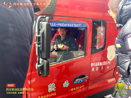 “金麥穗”服務(wù)隊還特別為外地大貨車司機送上了暖心湯圓。這些大貨車司機常年奔波在外,很難和家人一起過節(jié)。當(dāng)他們收到這份特別的節(jié)禮時,眼中滿是感動。一位司機師傅說:“雖然不能回家,但在這里感受到了家的溫暖,更感受到了千年古都西安人民的熱情,謝謝糧油市場對我們的關(guān)心。”